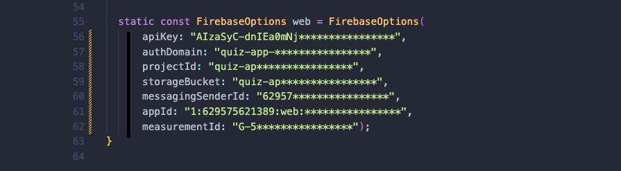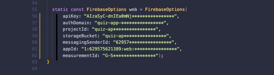 Now, go to your IDE and open the lib/firebase_option.dart file and paste the line there.