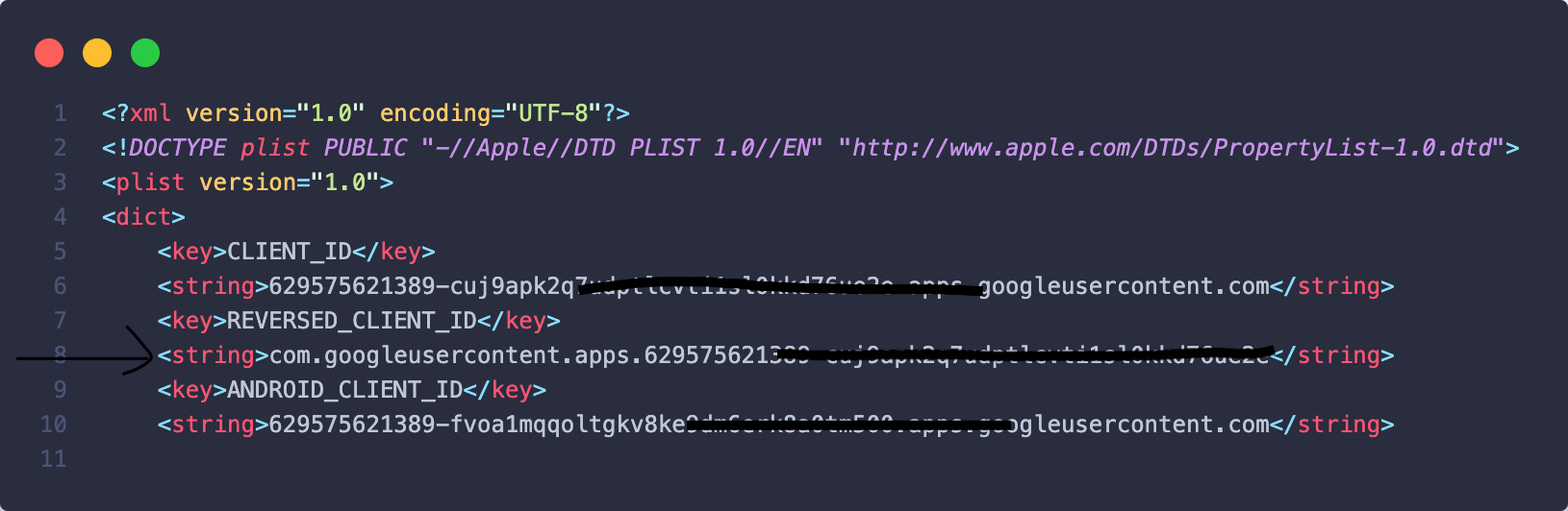 Now, open the GoogleService-info.plist file in your IDE and copy the REVERSED_CLIENT_ID. (See the picture below)