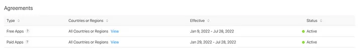Free apps agreement doesnβt require you to add your bank account and fill in the Tax information, but Paid Apps do require. You need to accept the Paid Apps agreement. Once you accept the agreement and fill in the necessary information, your status of agreements will be active. Just like this ππ»ππ»ππ»